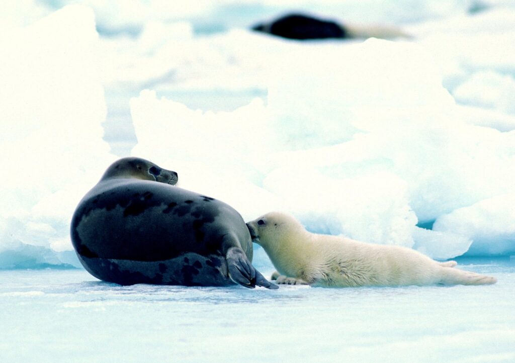 Seals are common along the coastlines and fjords of East and South Greenland. Ringed seals and harp seals are most often seen, usually swimming among the ice or resting on floes. Ringed seals are small and quiet, and they are the primary prey of polar bears. Harp seals travel in groups and are more vocal. Hooded seals, with their large size and inflatable nose sacs, are less common but sometimes appear in the more remote fjords. You may spot seals while cruising among the ice or during Zodiac rides, watching them pop their heads up or slide into the water.